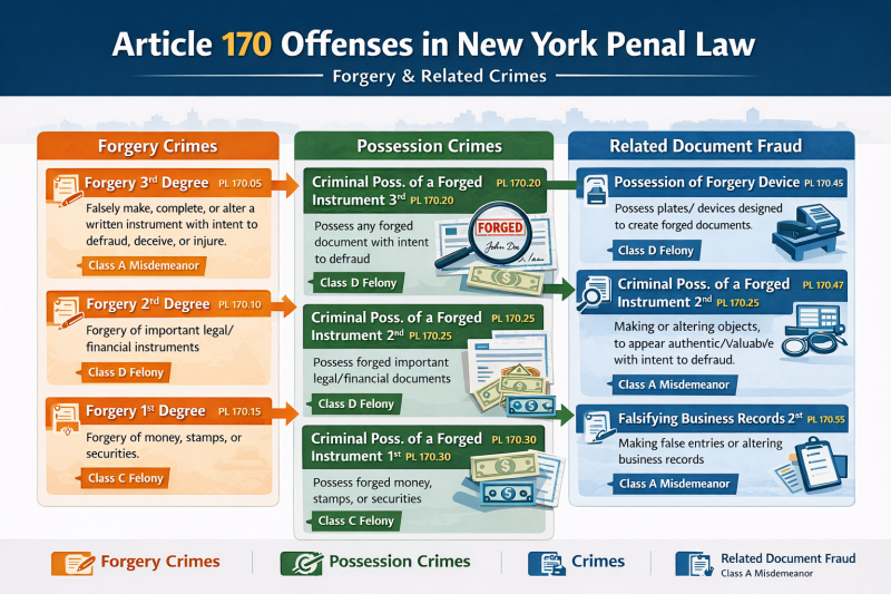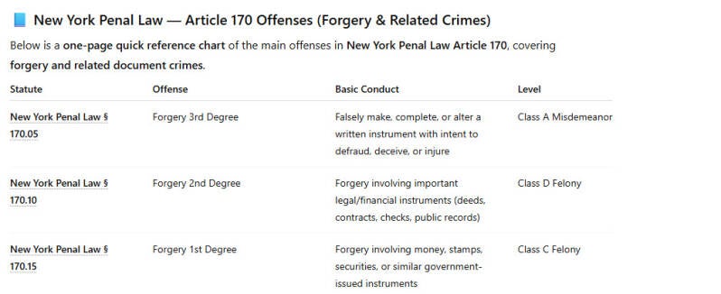 New York Penal Law § 190.80 — Identity Theft 1st Degree: involves $2,000+ loss/gain, felony use of identity, or repeat identity theft.